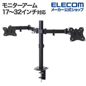 - エレコム モニターアーム ダブルアーム ロング 13インチ - 32インチ モニター 対応 ディスプレイアーム ブラック┃DPA-DL03BK
