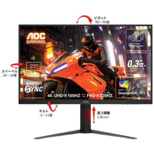 - 液晶ディスプレイ AOC U27G4/11 [27型ゲーミング液晶ディスプレイ/3840×2160/HDMI、DisplayPort/スピーカー:なし/160・320Hz]