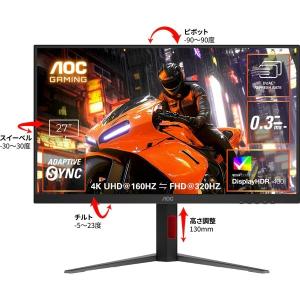 - AOC U27G4XM/11 ゲーミング液晶ディスプレイ 27型/3840×2160/HDMI、DisplayPort/ブラック/スピーカー:なし/160/320Hz