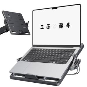 - 作業安定性UPノートパソコントレイ 幅調節28-40cm 上下移動・挟みクランプ 12.5-16.5インチ対応 取付簡単 ケーブル