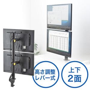 - モニターアーム ロングポール ディスプレイアーム 上下2画面 縦並び 32インチまで 耐荷重各8kg デュアルPCモニタスタンド
