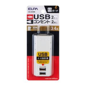 - エルパ(ELPA) 耐雷USBタップ 電源タップ 延長コード 2個口 2ポート 3.4A UA-223SB