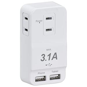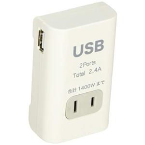 - OHM 2口壁タップ 2USB付 2.4A HS-TA2U2-W 00-1900