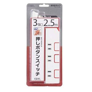 - オーム電機 押しボタンスイッチ付き 節電タップ 3個口 2.5m [HS-T1176W]