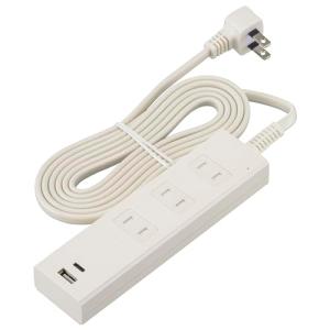 - オーム電機 電源タップ 3個口 急速充電 PD対応Type-C/Type-Aポート付き 1m ホワイト HS-TPU31PD23-W 00-10