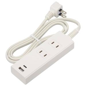 - オーム電機 電源タップ 2個口 急速充電 PD対応Type-C/Type-Aポート付き 1m ホワイト HS-TU21PD23-W 00-100