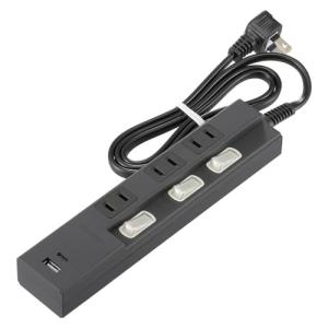 - オーム電機 電源タップ 3個口 個別スイッチ付き PD対応Type-C/Type-Aポート付き 1m ブラック HS-TPU31PD23-K 0