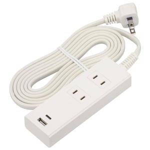 - オーム電機 電源タップ 2個口 急速充電 PD対応Type-C/Type-Aポート付き 2m ホワイト HS-TU22PD23-W 00-100