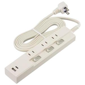 - オーム電機 電源タップ 3個口 個別スイッチ付き PD対応Type-C/Type-Aポート付き 2m ホワイト HS-TPU32PD23-W 0