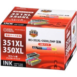 - オーム電機 INK-C351350XLB-5P キヤノン互換 BCI-351XL+350XL/5MP 顔料ブラック+染料4色