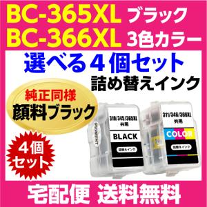 - キャノン BC-365XL〔大容量 ブラック 黒 純正同様 顔料インク〕BC-366XL〔大容量 3色カラー〕の選べる4個セット 詰め替えインク TS3530