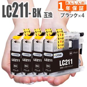 【互換品】 LC211BK ブラック 4本 ブラザー LC211 互換インク インクカートリッジ プリンターインク