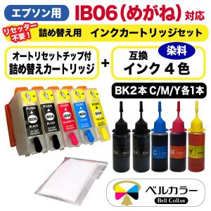- トリプル保証 エプソン 互換 IB06 めがね 詰め替えカートリッジ 自動リセットチップ 詰め替え用 互換インク 4色 5本セット 純正比 約2.1倍 ベルカラー