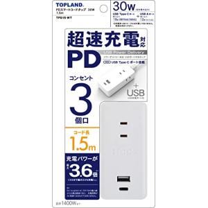 - トップランド 電源タップ USB PD 対応 超速充電 (AC3個口 / USB-A 1口 / USB-C 1口) コード長1.5m オートパワ