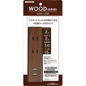 - トップランド USB 電源タップ 雷ガード コンセント2個口 USBポート2個口 延長コード 1.5m 木目調コード オートパワーシステム搭載