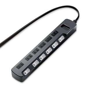 - エレコム 電源タップ マグネット 強力 1m 6個口(内3ピン1) ブラック T-KM01-2610BK