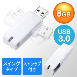 - USBメモリ 8GB USB3.0 高速 スイング式 USBメモリー キャップレス ホワイト 600-3US8GW