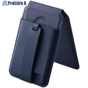 - ELECOM スマホスタンド MAGKEEP バンド付 動画視聴 カードポケット付 2枚収納 ネイビー ■▼717-1347 AMS-MAGCSBNV 1個