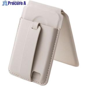 - ELECOM スマホスタンド MAGKEEP バンド付 動画視聴 カードポケット付 2枚収納 ベージュ ■▼717-1359 AMS-MAGCSBBG 1個