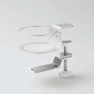 - あすつく エレコム ヘッドホンスタンド ホルダー クランプ式 ドリンクホルダー付 デスク下 収納 シルバー