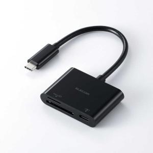 - エレコム ELECOM SDカードリーダー Type-C SD/microSD対応 PD100W 充電しながらデータ転送 ケーブル一体型 ブラック MR3C-C20PBK