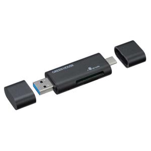 - グリーンハウス USB Type-C+USB Type A コンパクト カードリーダ/ライタ [USB3.0/2.0/1.1 /スマホ・タブレット対応] GH-CRACA-BK