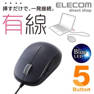 - エレコム 有線マウス 5ボタン BlueLED 有線 マウス 戻るボタン ブラック ブラック┃M-Y9UBBK