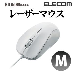 - エレコム 有線マウス 高精度の読取性能USBレーザー 3ボタン 有線 マウス Mサイズ ホワイト Mサイズ┃M-S2ULWH/RS