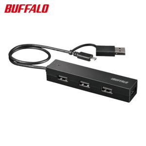 - バッファロー BUFFALO タブレット・スマホ用 USB2.0 4ポートハブ 変換コネクター付き ブラック (1個) 品番:BSH4UMB04BK