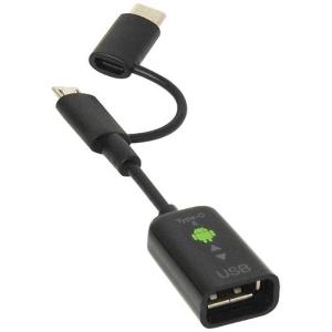 - ナカバヤシ 0.1m[USB-C+micro USB オス→メス USB-A]変換アダプタ ブラック ZUH-CMBAR201BK
