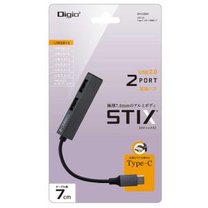 - ナカバヤシ Digio2 USB Type-C 極薄変換ハブ STIX USB2.0 Type-A 4ポート グレー UH-C2584GY