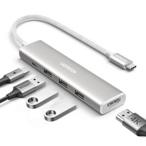 - UGREEN 5-IN-1 USB Cハブ 100W PD急速充電 Type-C 3*USB‐A3.0ポート4K HDMI2.0出力 5Gbps