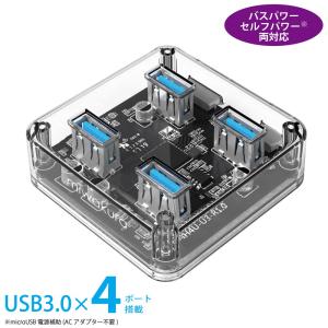 - 4ポート USB3.0 ハブ HUB miwakura 美和蔵 バスパワー/セルフパワー(microUSB電源補助) 手のひらサイズ 高透明デザイン MPC-HU4PU3 ◆メ