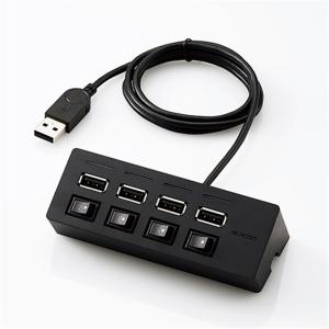 - エレコム 機能主義USBハブ スイッチ付き 4ポート USBHUB2.0 個別スイッチ付 バスパワー 4ポート 100cm ブラック┃U2H-TZS428BXBK
