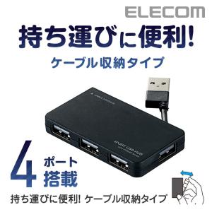 - エレコム USB 2.0 対応 ケーブル収納タイプ USBハブ 4ポート USB ハブ ブラック ブラック┃U2H-YKN4BBK