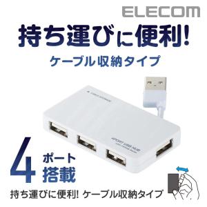 - エレコム USB 2.0 対応 ケーブル収納タイプ USBハブ 4ポート USB ハブ ホワイト ホワイト┃U2H-YKN4BWH