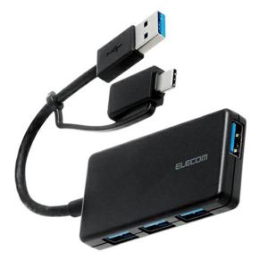 - エレコム USB Type-C(TM)変換アダプター付き USB 5Gbps超薄型ハブ U3H-CA4004BBK