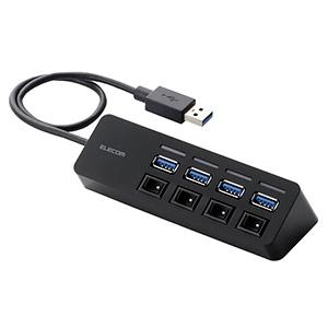 - ELECOM USB3.0ハブ バスパワータイプ 4ポート マグネット・個別スイッチ付 ケーブル長30cm U3H-S418BBK