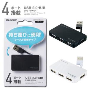 - エレコム USB2.0 ハブ 4ポート バスパワー コンパクト ケーブル収納 ホワイト U2H-YKN4BWH