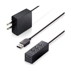 - エレコム USB 2.0 対応 USBハブ ACアダプタ付属 4ポート USB ハブ セルフパワー ブラック ブラック┃U2H-AN4SBK