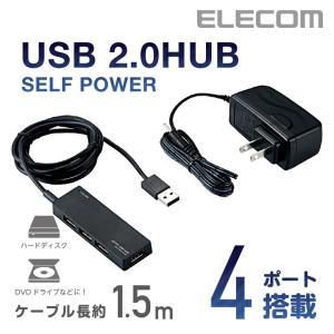 - エレコム U2H-TZ427SBK ブラック USBハブ 2.0 セルフパワー 4ポート 機能主義 1m