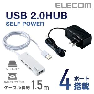- エレコム USB 2.0 対応 USBハブ ACアダプタ付属 4ポート USB ハブ セルフパワー ホワイト ホワイト┃U2H-AN4SWH
