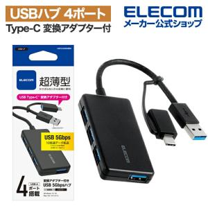 - エレコム USB Type-C 変換アダプター付き USB3.0 超薄型ハブ Type-C変換アダプタ付き コンパクト バスパワー 4ポート ホワイト U3H-CA4004BWH