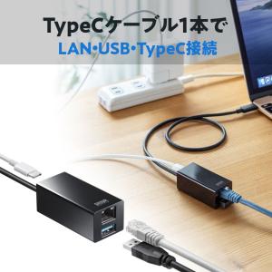 - ギガビットLANアダプタ USB Type-Cハブ付き Type-Cポート+USB Aポート USB-3TCH33BK サンワサプライ