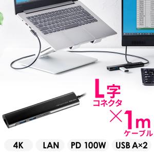 - ドッキングステーション USB Type-C 3.2 Gen1 ハブ USBハブ HDMI 4K L字コネクタ 有線LAN モバイル 拡張 増設 ドッキングハブ ケーブル PD対応 1m 400-HUBC8BK