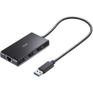 - サンワサプライ USB-3H322BKN USB3.2 Gen1 ハブ付き ギガビットLANアダプタ SANWASUPPLY