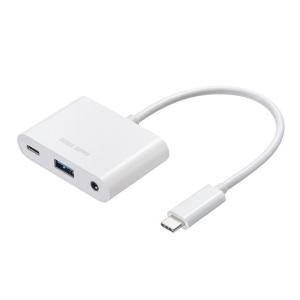 - サンワサプライ イヤフォンジャック付きType-Cハブ ケーブル一体型(2P・15cm・ホワイト) USB-5TCPA23W 返品種別A