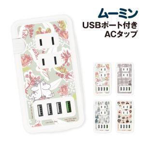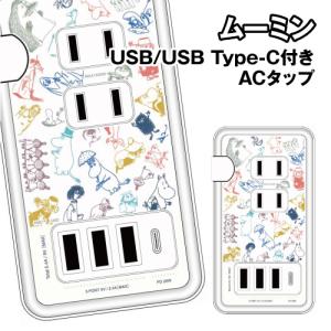 - 送料無料 ムーミン USB/USB Type-C付き ACタップ MMN-176 / ムーミン総柄 リトルミイ総柄 森の中 リトルミイ