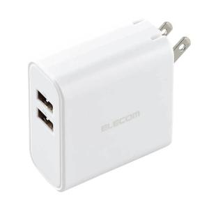 - エレコム スマホ充電器 USB充電器 USBポート×2 コンパクト 2台同時充電 スマホ タブレット ホワイト