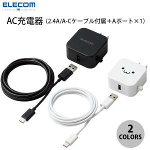 - エレコム スマホ充電器 USB充電器 キューブ型 1A出力 ケーブル一体 microB 1.5m ホワイトフェイス MPA-ACMAC155WF